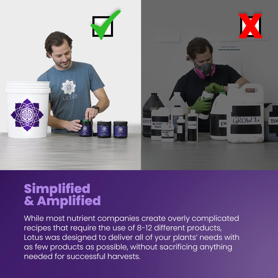 Experience the unrivaled power of Lotus, the most awarded nutrient line for soil, hydro, or coco. Our revolutionary 3-part system outperforms any 9-12 part system on the market- Guaranteed.